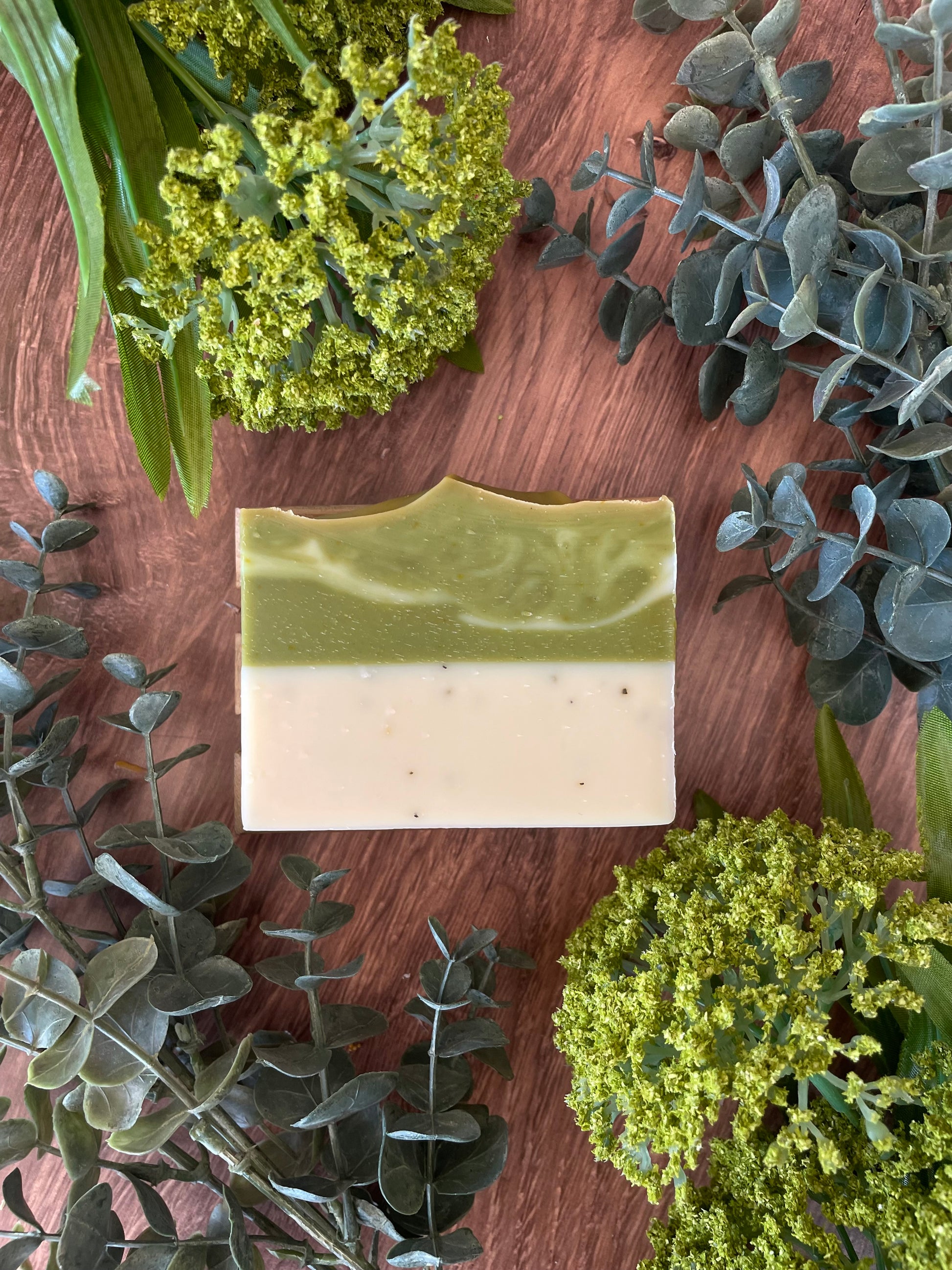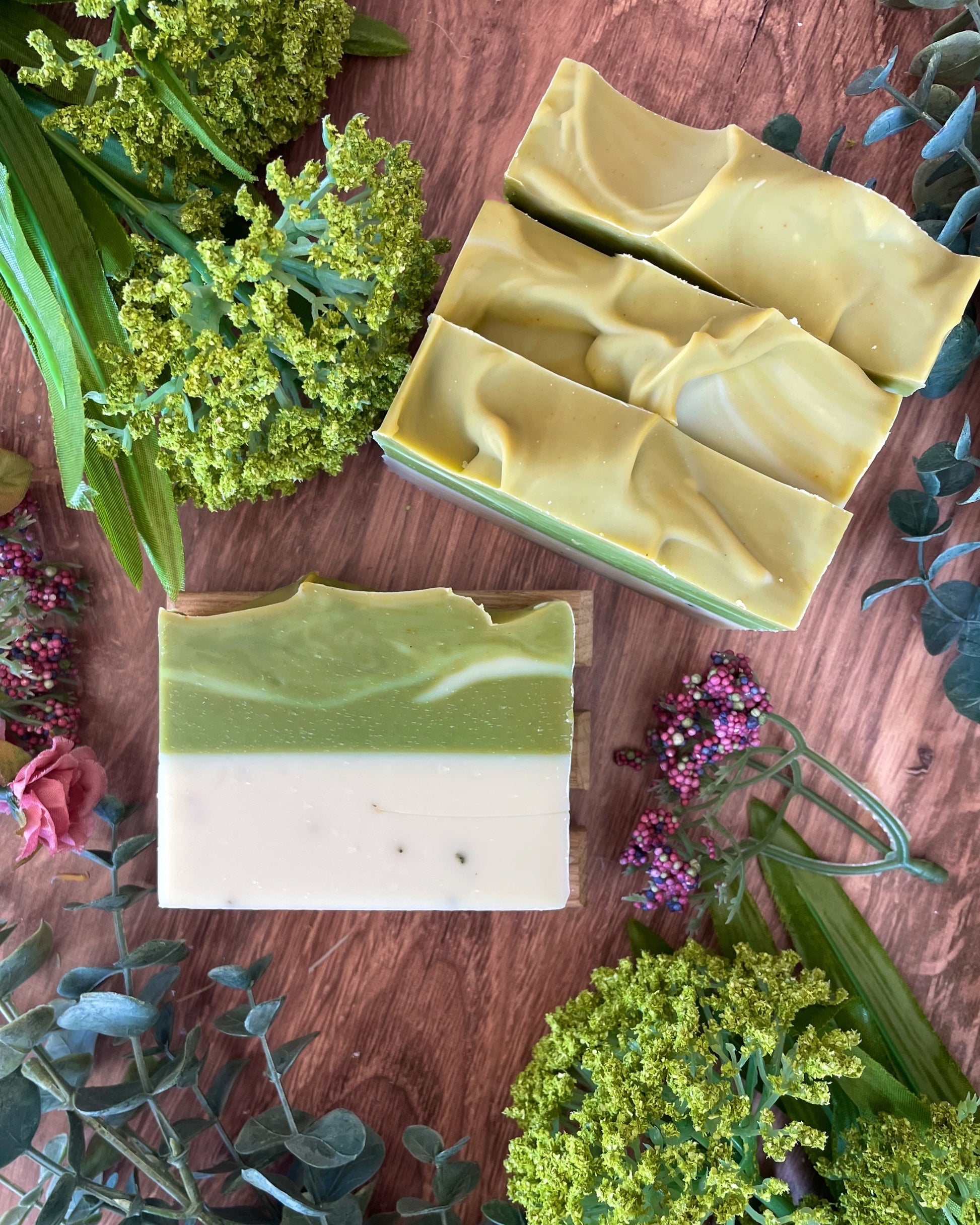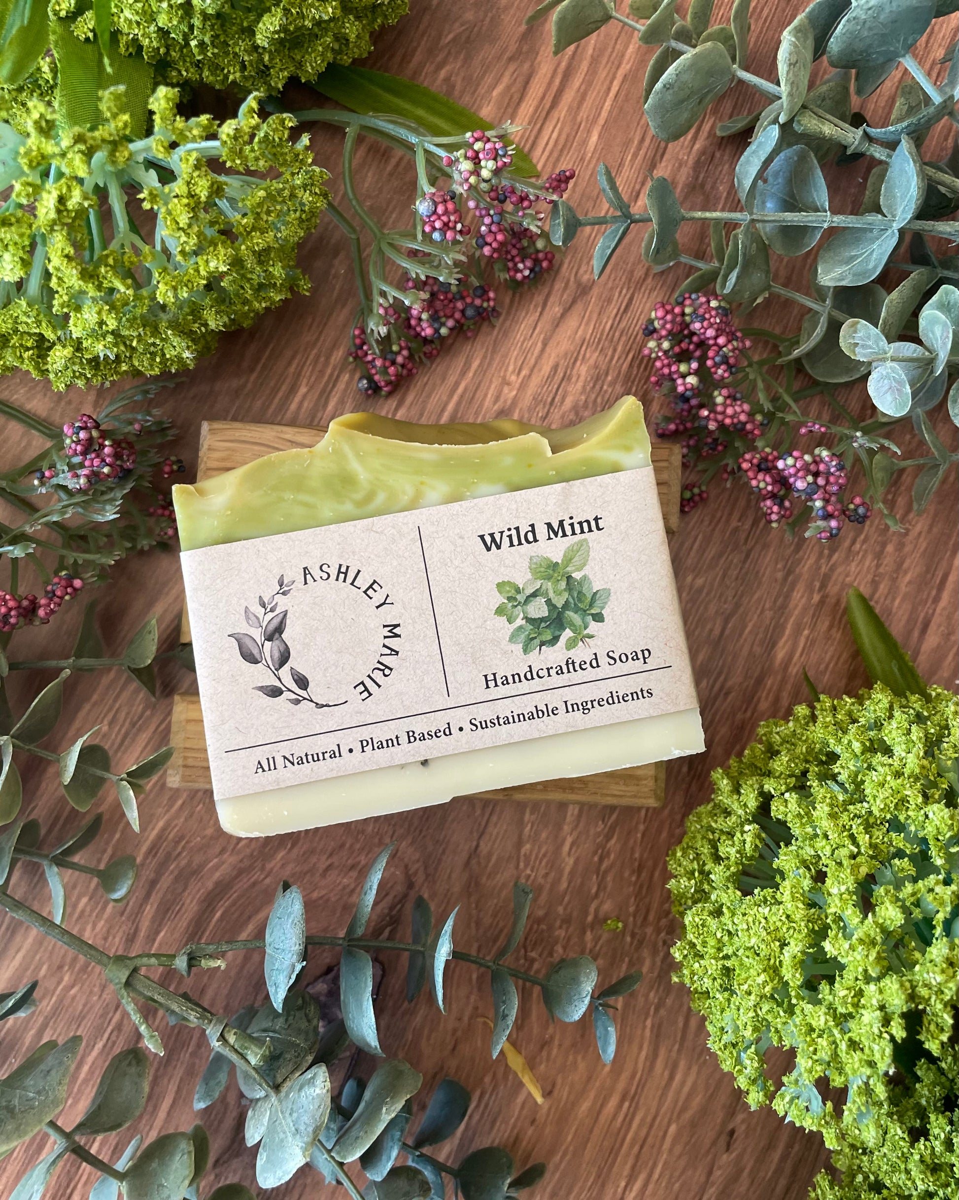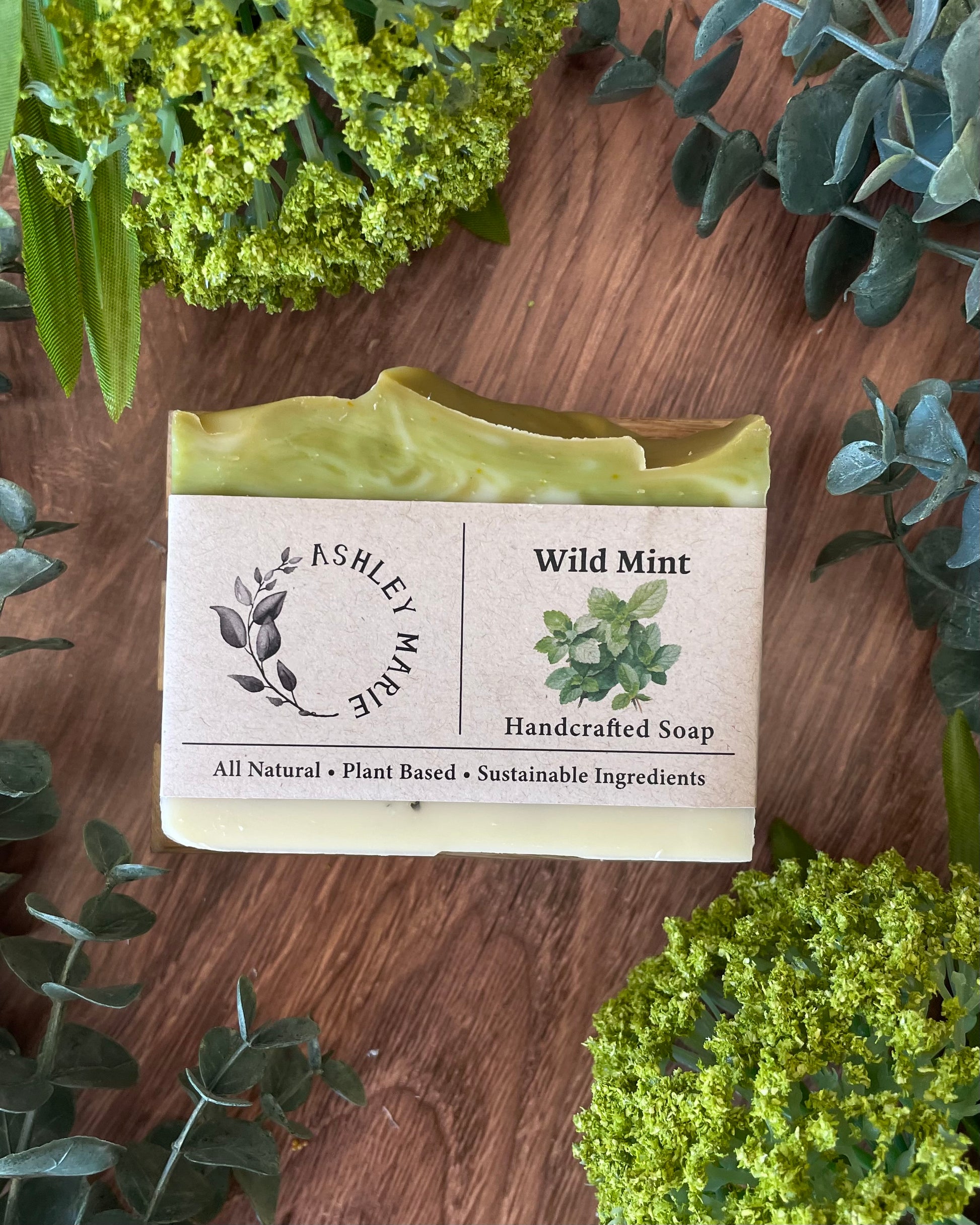 Awaken your senses with Wild Mint, a crisp and refreshing soap that captures the essence of Spring. Crafted with a revitalizing essential oil blend of peppermint, spearmint, and a hint of vetiver, this bar delivers a cool, minty freshness with a touch of earthy depth. Naturally colored with a beautiful green infusion of alfalfa powder, it reflects the lush vibrancy of the season. Perfect for a refreshing cleanse, Wild Mint is a must-have for spring! Available for a limited time—grab yours while supplies last!