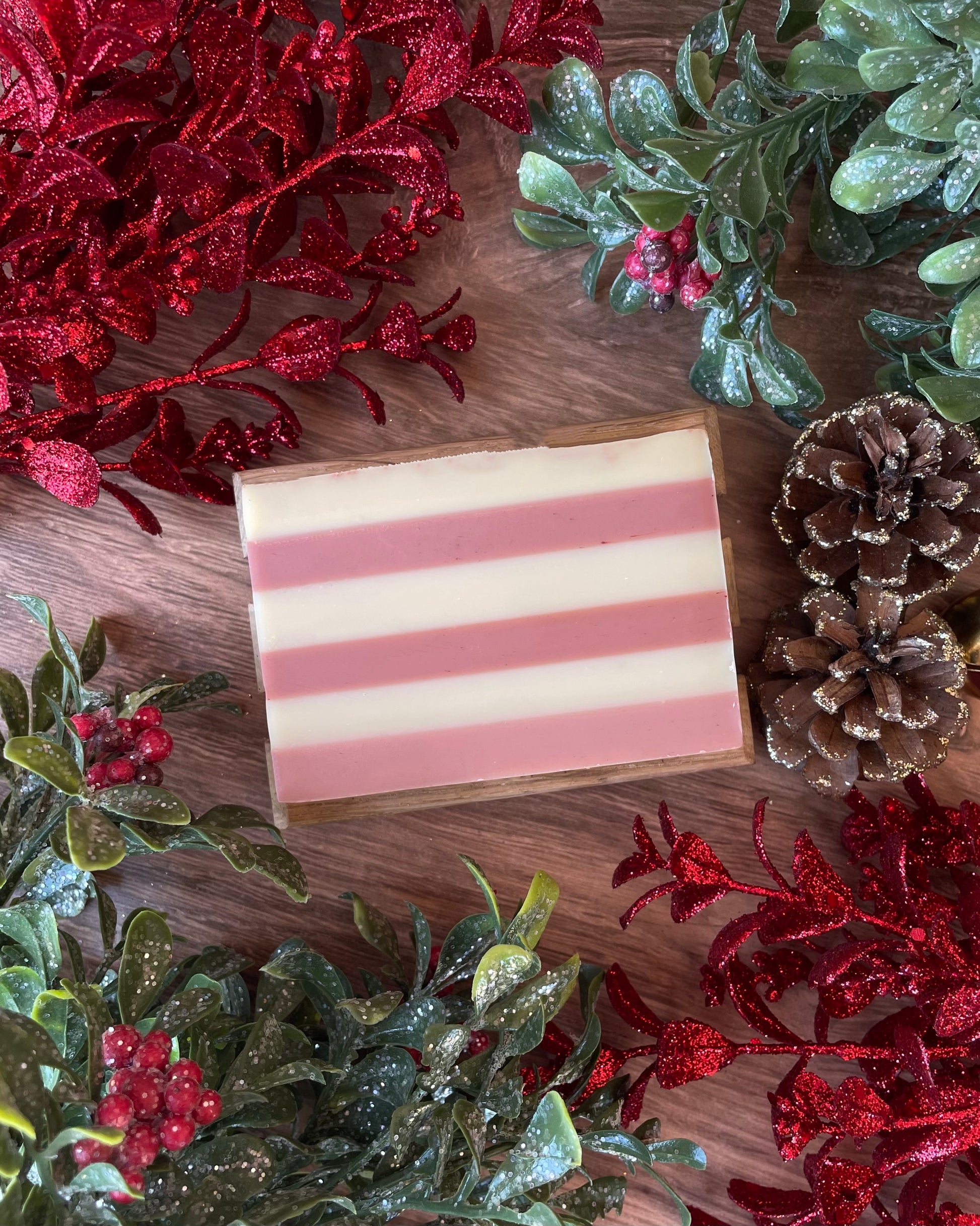Our annual Candy Cane soap is here, bringing a touch of holiday magic to your skincare routine! This beautiful soap features festive red and white stripes, with delicate red swirls on top to capture the joy of the season. Scented with a delightful blend of peppermint essential oil, benzoin, and vanilla extract, each bar offers a cozy, refreshing aroma that’s both soothing and uplifting.