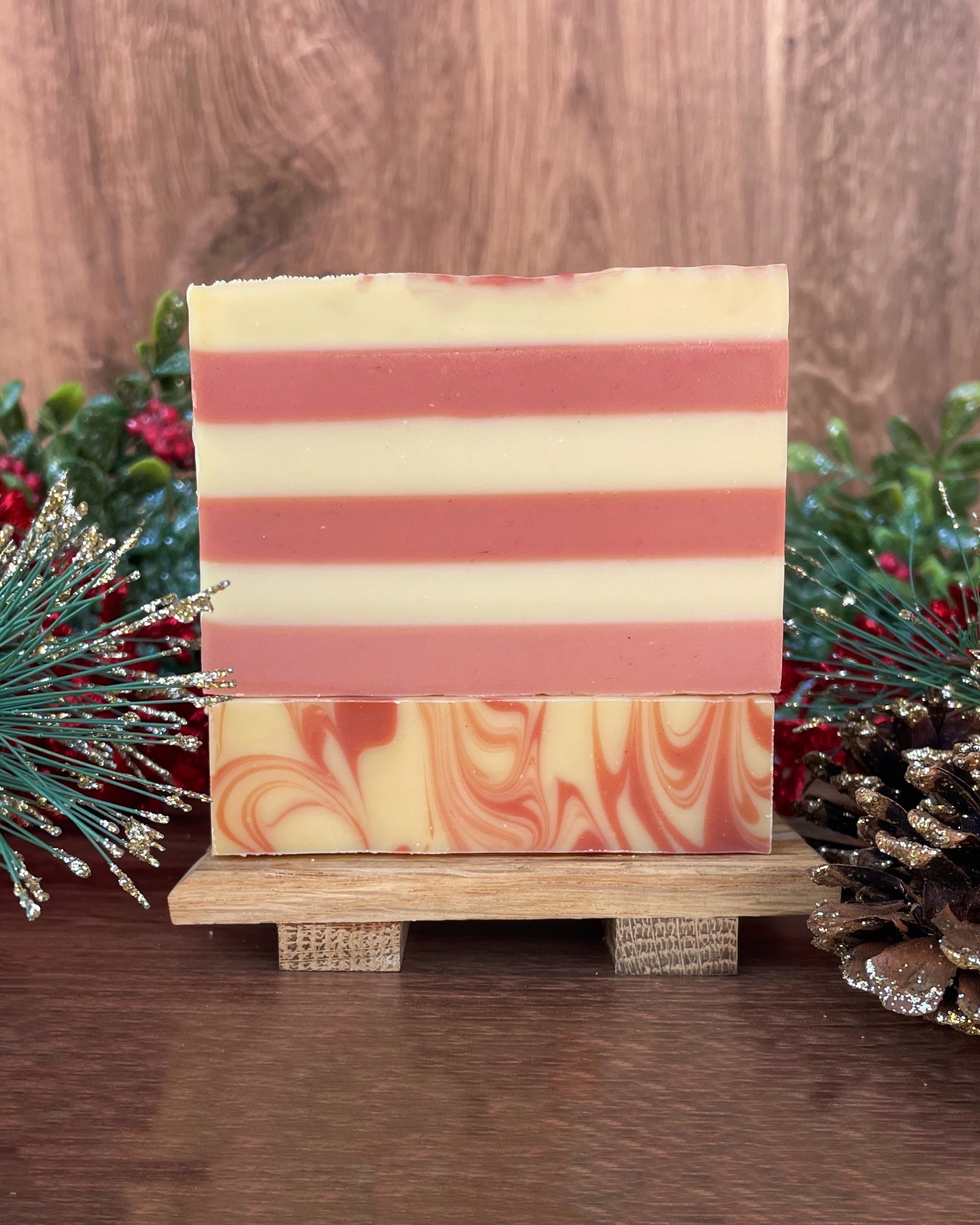 The Candy Cane soap was my gift to myself when I bought soaps as Christmas gifts for my family! The fragrance is both invigorating and mellow at the same time! You will feel a bit of a peppermint tingle for just a bit after bathing--so lovely! Thank you, Ashley for such a wonderful product! I trust this will be part of each Christmas batch in years to come!!