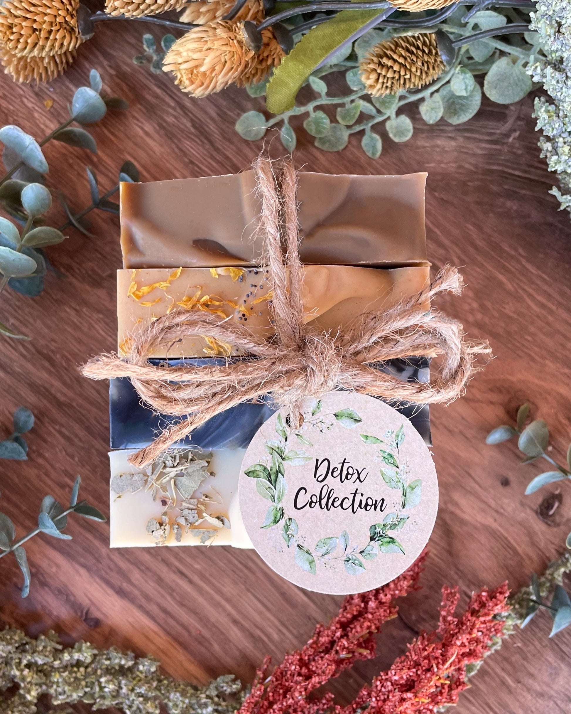 Revitalize and renew your skin with our Detox Soap Bundle. A powerful collection of four bars formulated to cleanse, heal, and nurture naturally. Packed with ingredients known for their detoxifying and skin-soothing properties, each soap in this bundle works to draw out impurities and support healthy, balanced skin.