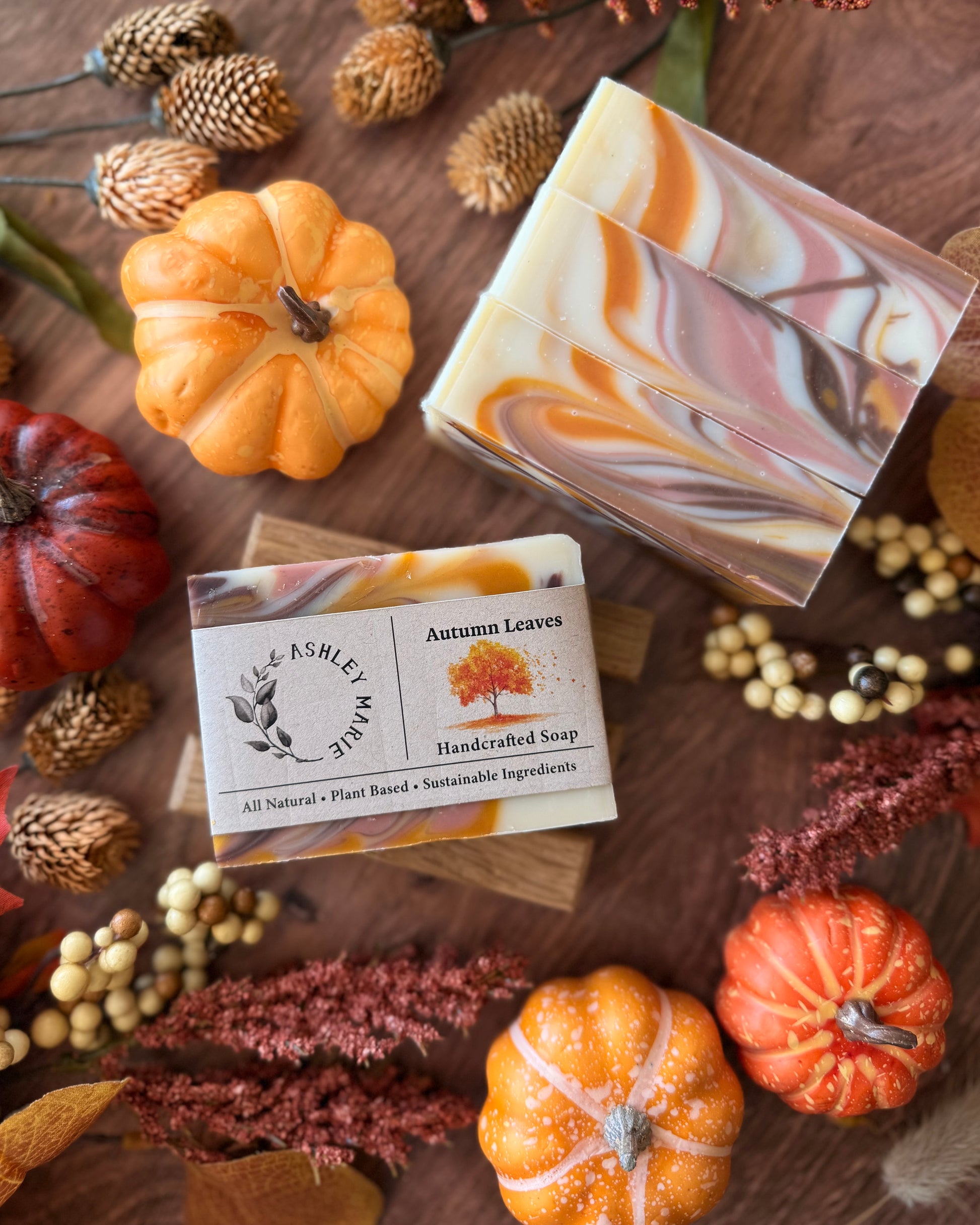 Capture the crisp, earthy charm of fall with our Autumn Leaves Soap. Made with a rich blend of cedarwood, patchouli, orange, fir needle, frankincense, and vetiver, it brings the scent of a breezy autumn forest straight to your bath. Cozy, refreshing, and perfectly seasonal—let every shower transport you to fall’s serene beauty.