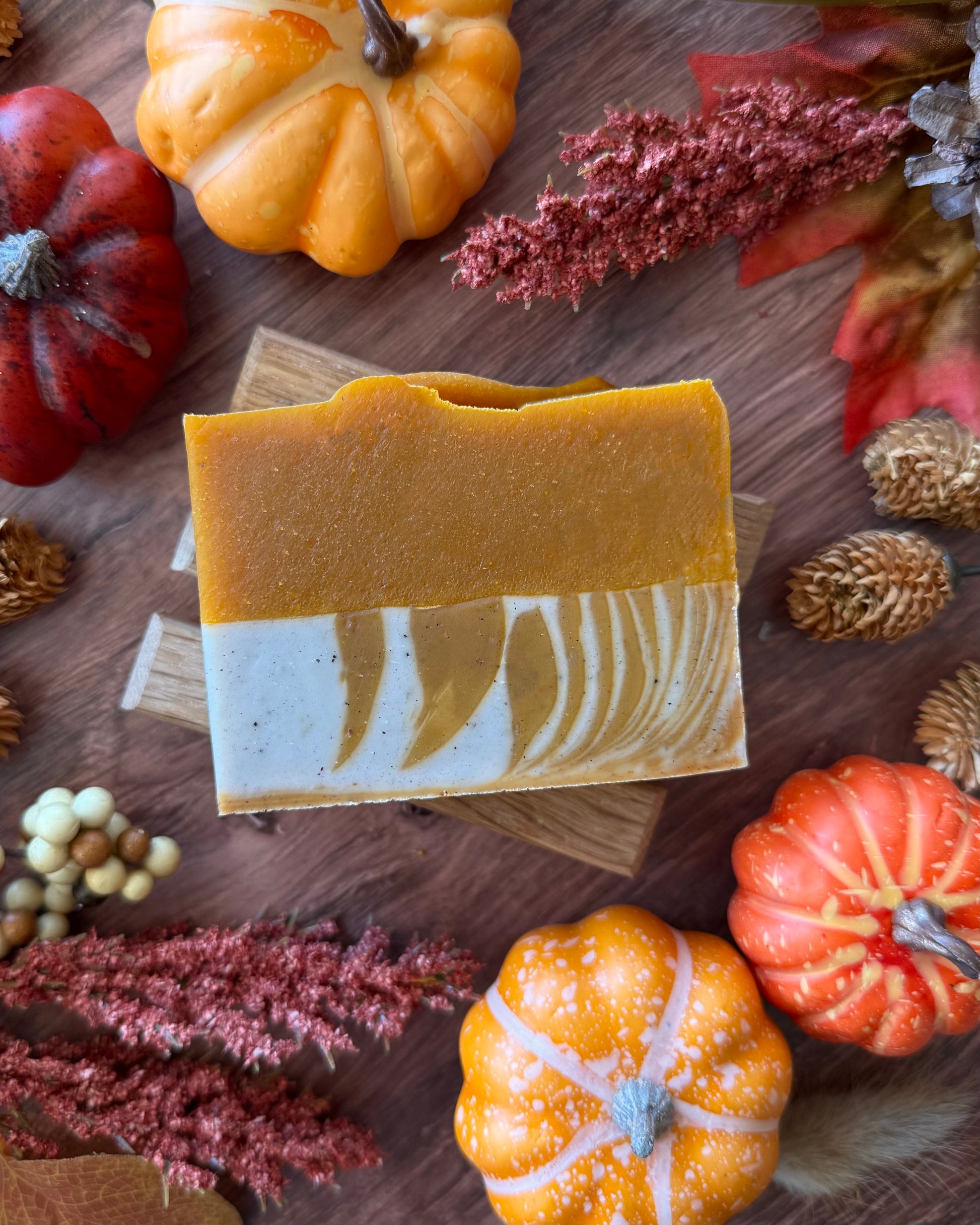 We use organic pumpkin puree to add a touch of seasonal authenticity. This natural ingredient not only enhances the soap’s creamy texture but also provides your skin with nourishing ingredients that help keep the skin smooth and moisturized.