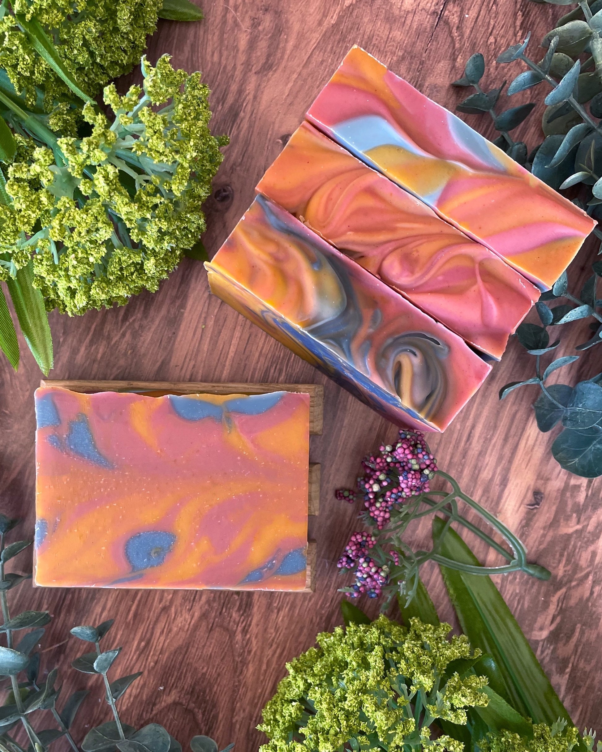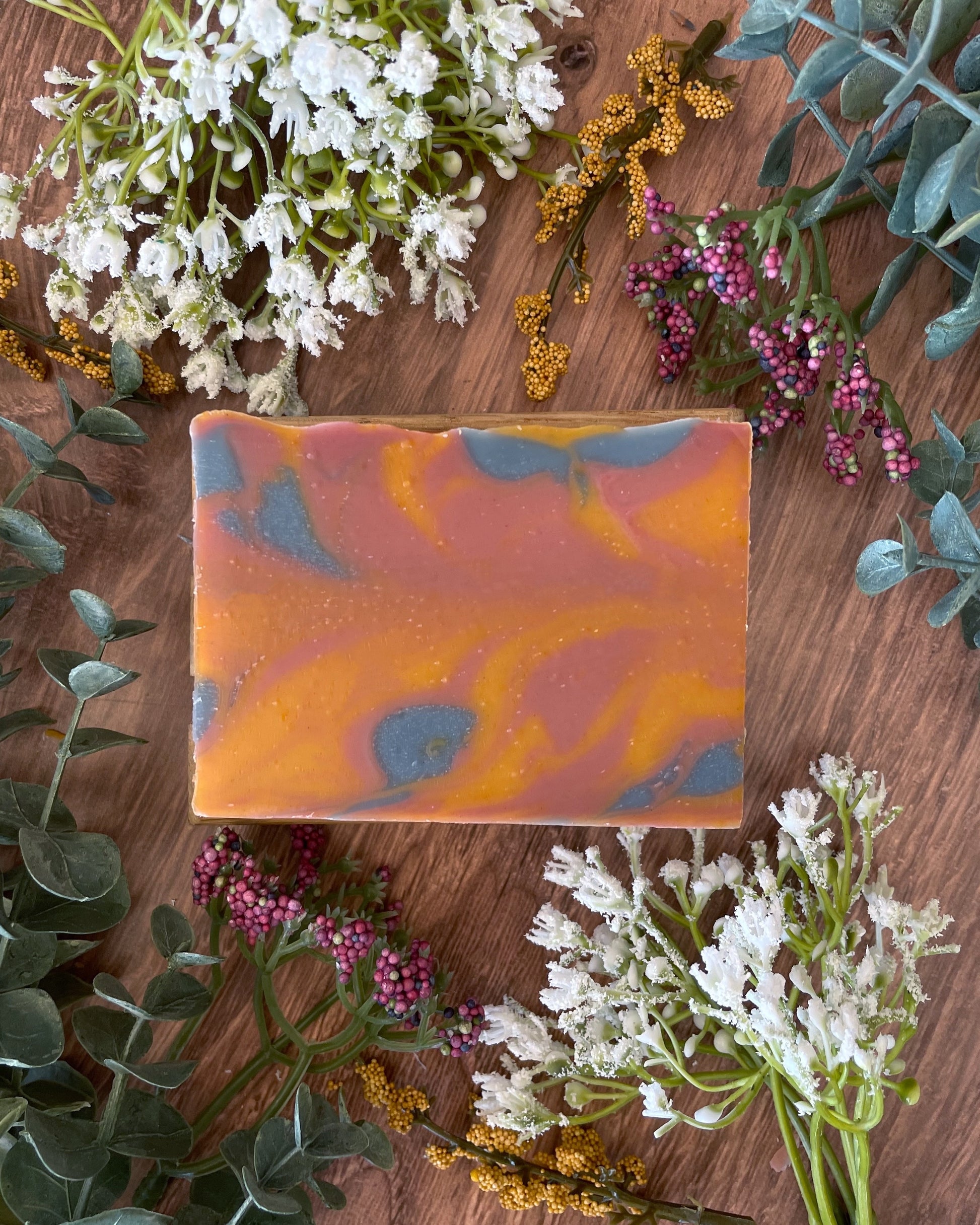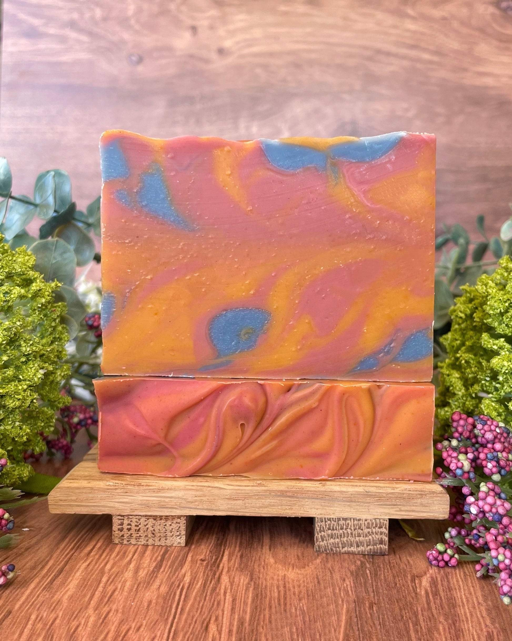 Our Spring Blossom soap is a gorgeous blend of color and fragrance, capturing the essence of the season. Swirled with soft pink from rose clay and warm yellow from annatto, this bar is as beautiful as a blooming spring garden.